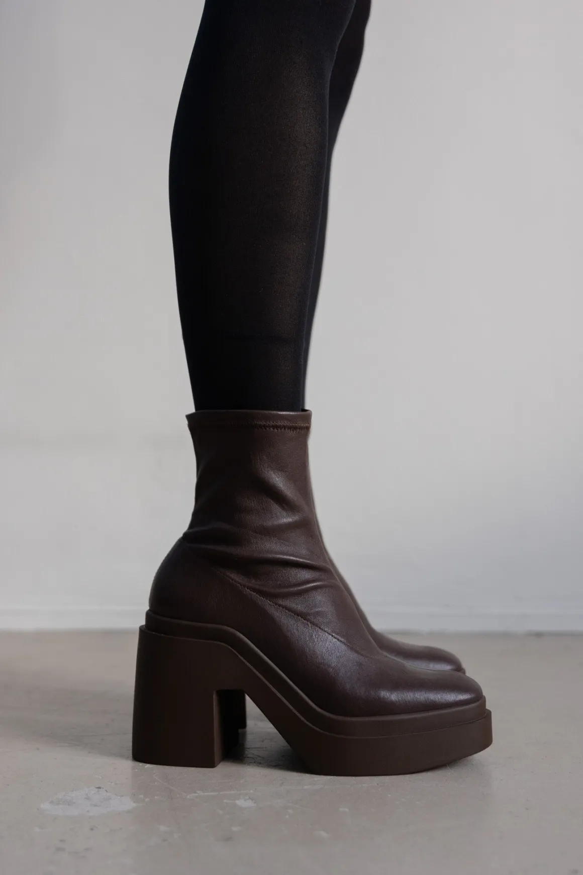 Ankelstøvletter i brunt fra franske Clergerie. Nina skiller seg ut med stilen til sålen som forenes i ett med hælen, og som overrasker med sin letthet og enestående komfort. Overdelen er laget av fleksibelt lammeskinn som fremhever konturen av benet. I tillegg har skinnet en absorberingsevne som beskytter mot dårlig vær. En ultimat partysko som er like fine til bukser, jeans, kjoler og skjørt.