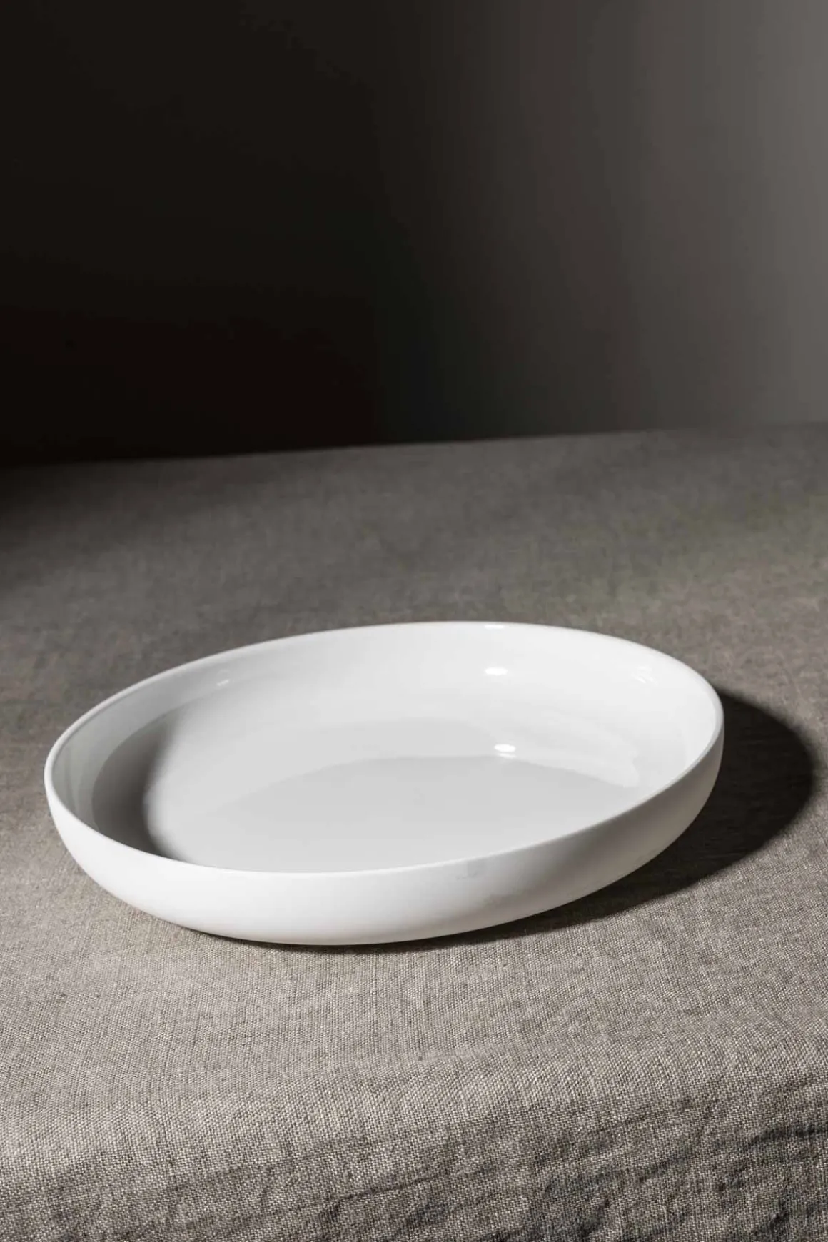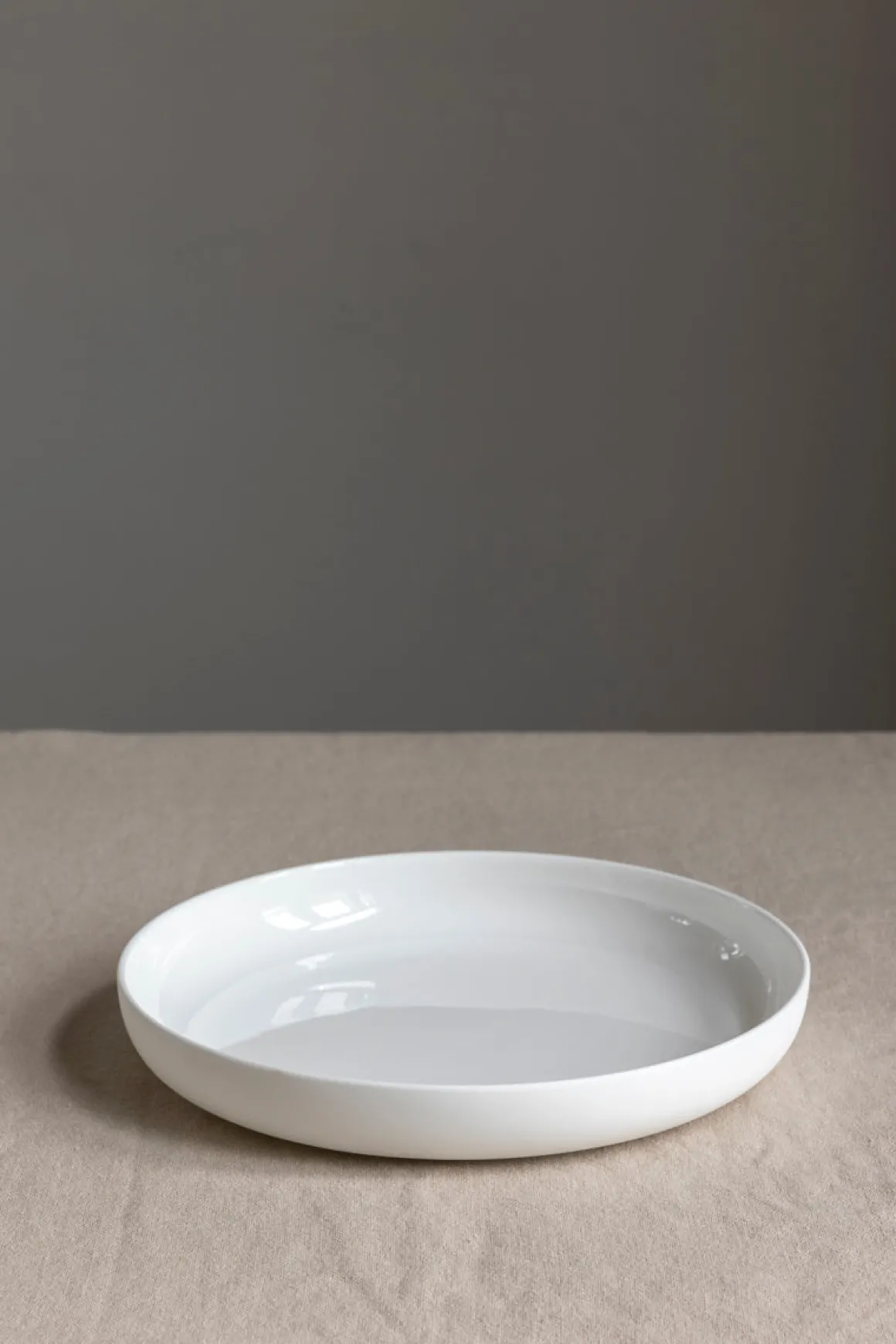 Ildfast tallerken med høye kanter fra Serax, designet av Studio Piet Boon. Tallerkenen har blank glasert innside og matt utside. Kanten på tallerkenen er avrundet oppover som gjør den svært allsidig til ulike retter. Base-serviset er enkelt med rent design som passer inn i ethvert hjem, og blandet med ulike typer servise. Kombiner med andre deler av Base-serviset for en fullført stil til bordet ditt.