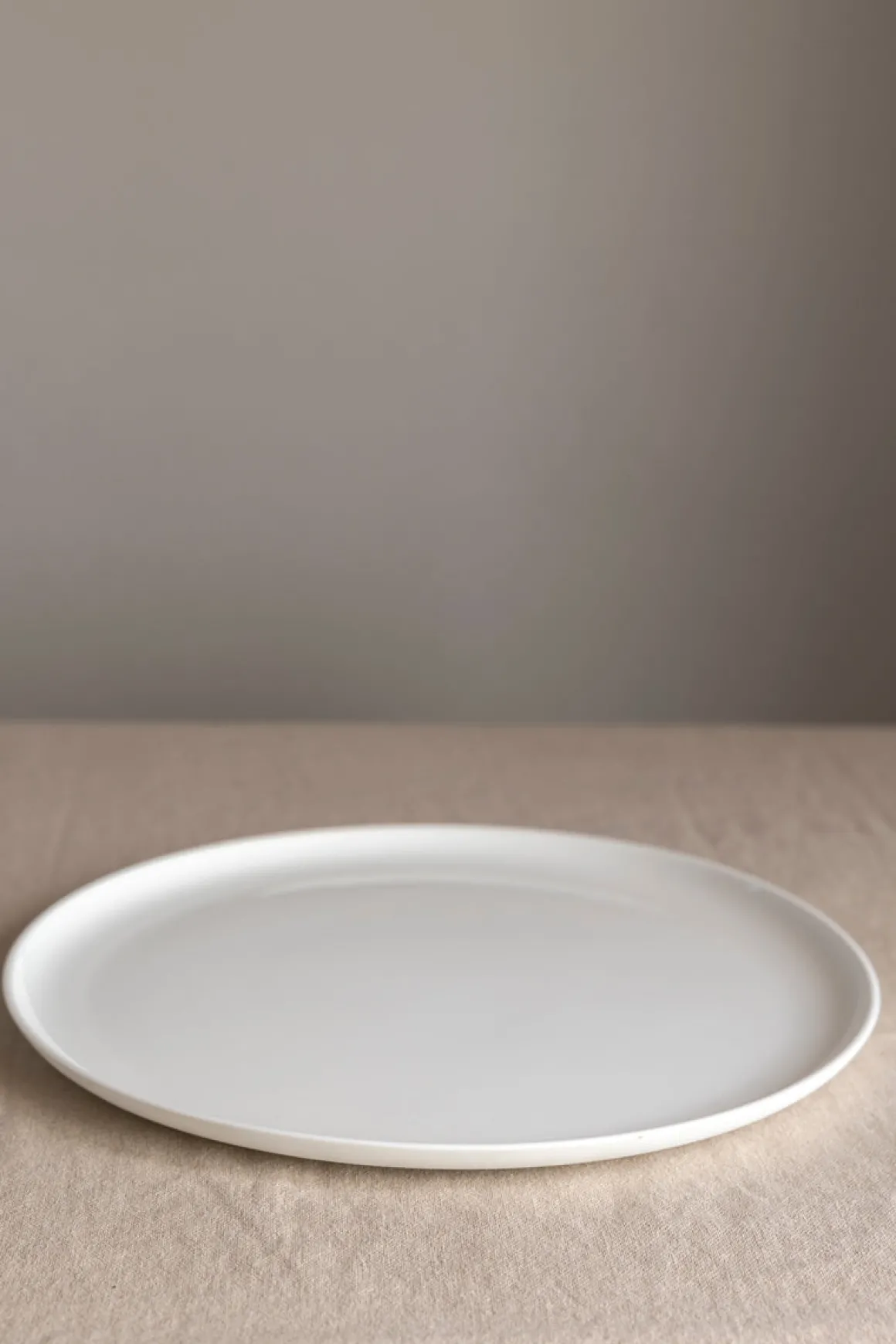 Stor Ildfast tallerken fra Serax, designet av Studio Piet Boon. Tallerkenen har blank glasert innside og matt utside. Kanten på tallerkenen er avrundet oppover som gjør den svært allsidig til ulike retter. Base-serviset er enkelt med rent design som passer inn i ethvert hjem, og blandet med ulike typer servise. Kombiner med andre deler av Base-serviset for en fullført stil til bordet ditt.