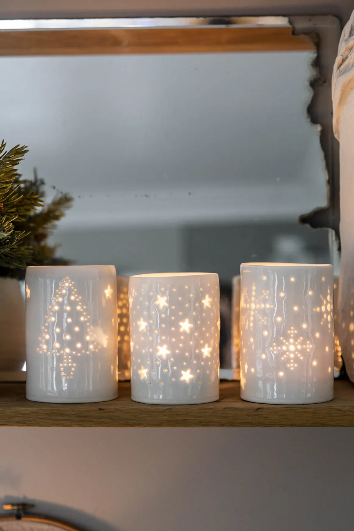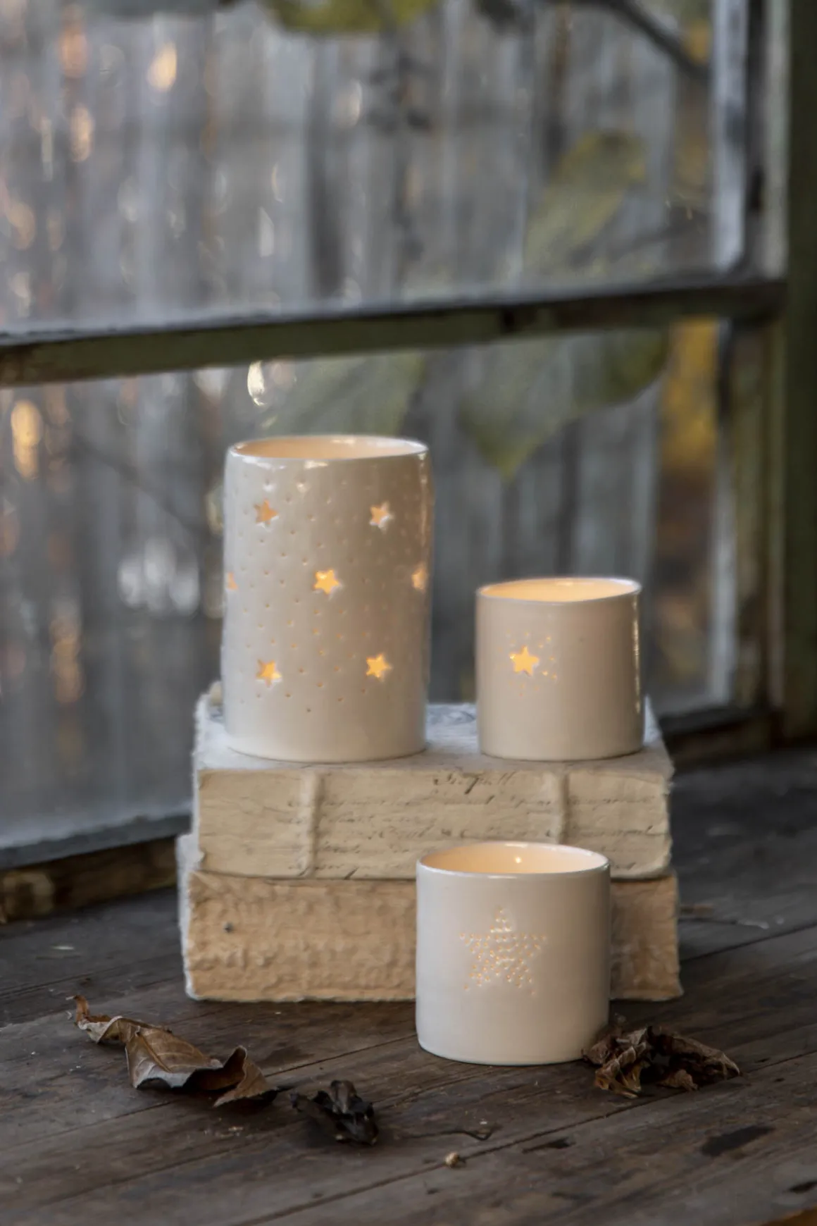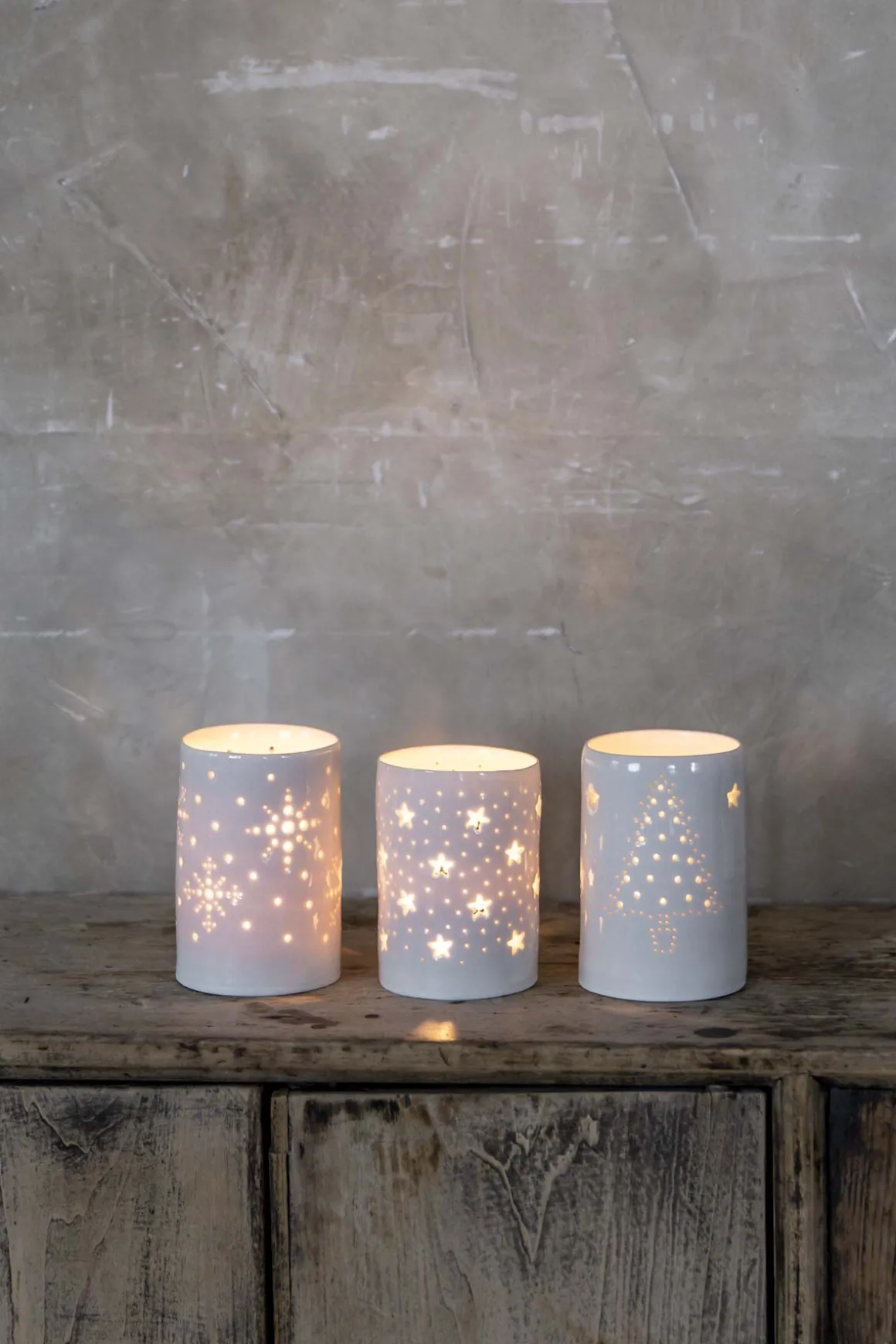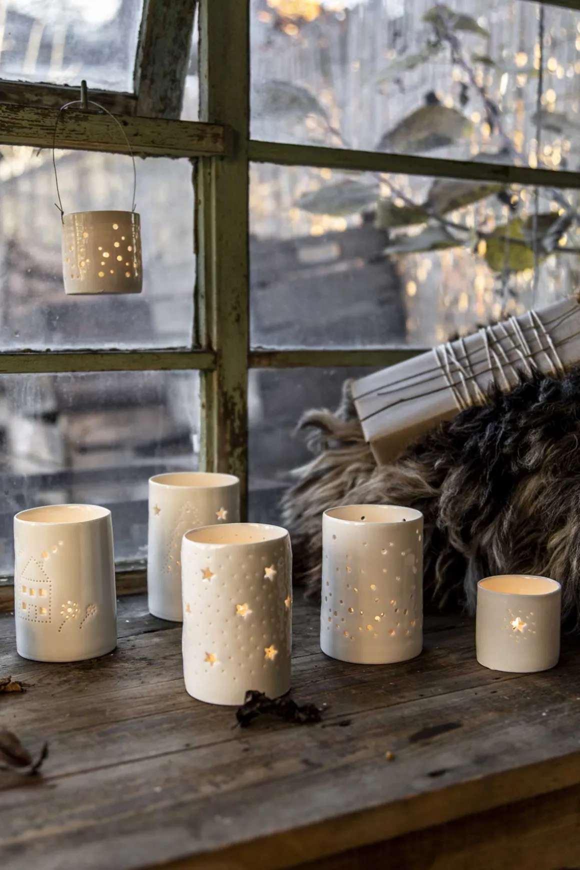 Sjarmerende telysholder i elfenbenshvit, glasert porselen fra Luna Lighting. Alle telysholdere er dekorert med små hull i kreative mønster for å slippe lyset ut og gi en magisk atmosfære i rommet. Hver enkelt telysholder er laget for hånd av et bittelite team i England og alle har små variasjoner i størrelse og form. Superfin å kombinere med andre telysholdere fra Luna Lighting! Bolinafavoritt i en årrekke.