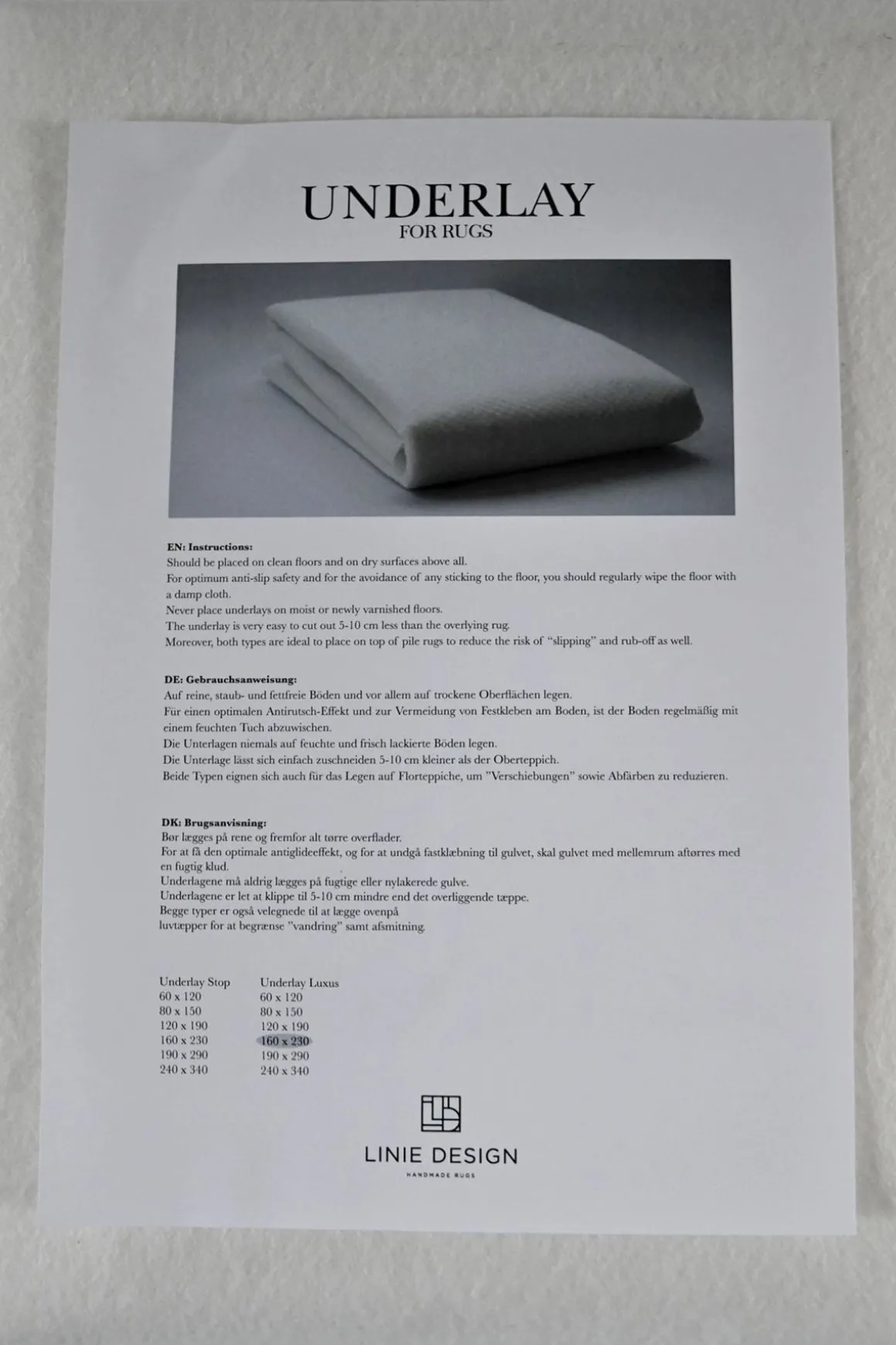 Teppeunderlag fra Linie Design. Passer på at gulvteppet ligger stødig og hindrer misfarging.
