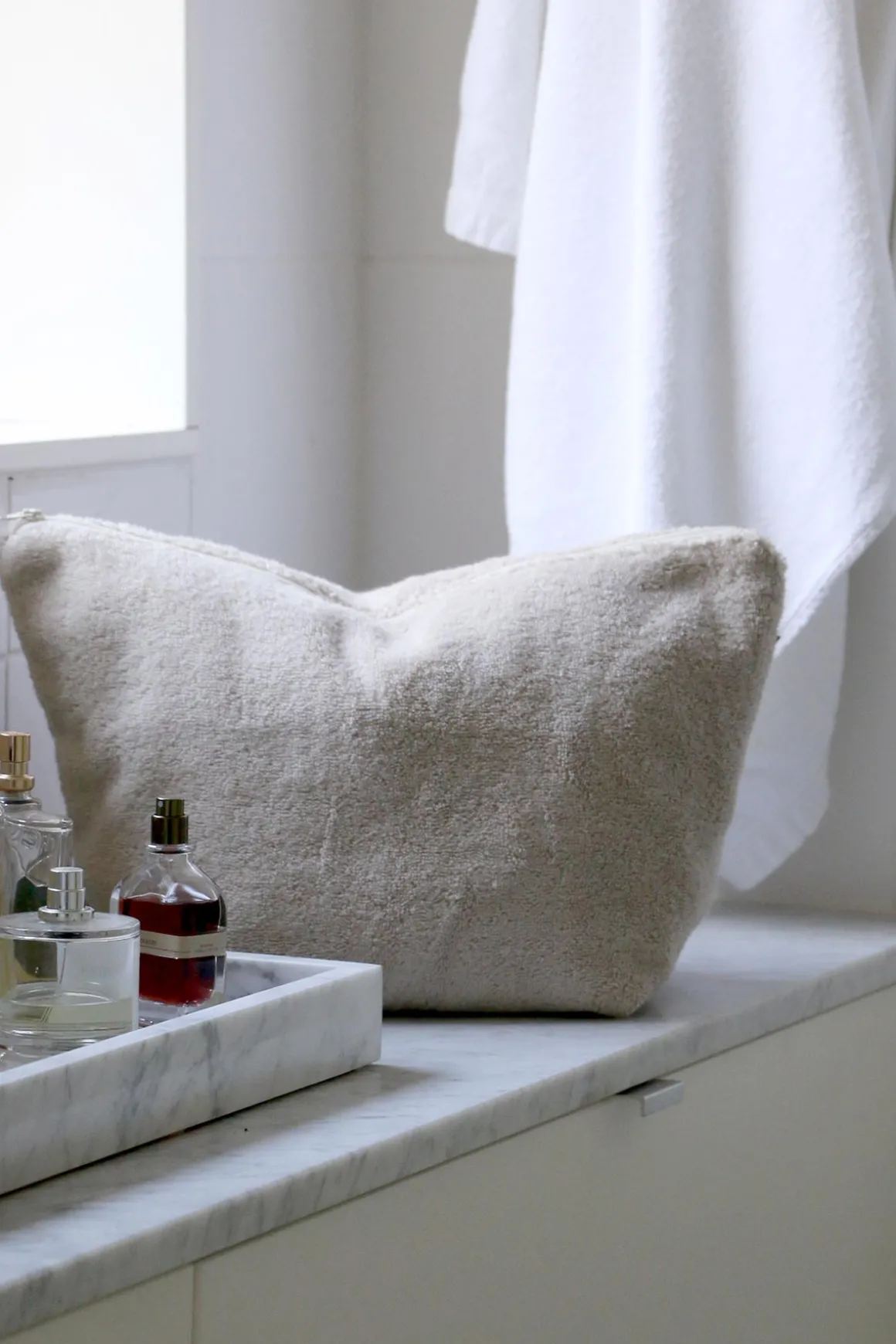 Maxime toalettmappe i fantastisk myk frotté er laget av 100% økologisk GOTS-sertifisert bomull fra Himla. Perfekt til oppbevaring av sminke, kremer og toalettsaker. Blir toalettmappen skitten kan den vaskes i maskin. Ha den stående på badet hjemme, eller ta den med i vesken på reise. Maxime lukkes med glidelås øverst og finnes i to praktiske størrelser. Toalettmappen er også en fin gave alle kan sette pris på!