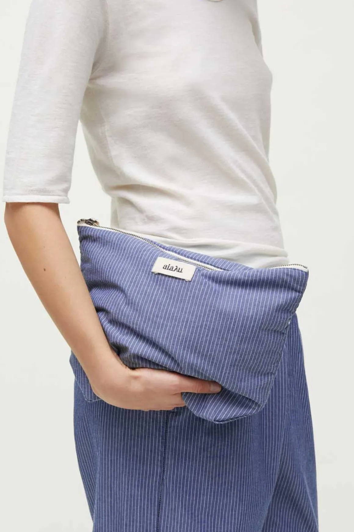 Den populære Aiayu Pouchen kommer nå i en nyyydelig blåfarge, med klassiske smale striper (Letto) med striper. Toalettmappene er laget av sertifisert økologisk bomullspoplin, med en praktisk glidelåslukking og en liten sløyfedetalj, er denne toalettmappen både fin og funksjonell. Innvendig fôr gir ekstra holdbarhet, og Aiayu-logoen på siden tilfører en fin finish. Perfekt størrelse til oppbevaring av småting som sminke og toalettsaker, eller til å holde alt samlet i en reiseveske. Dette er den største toalettmappe, finnes i en mindre størrelse.
