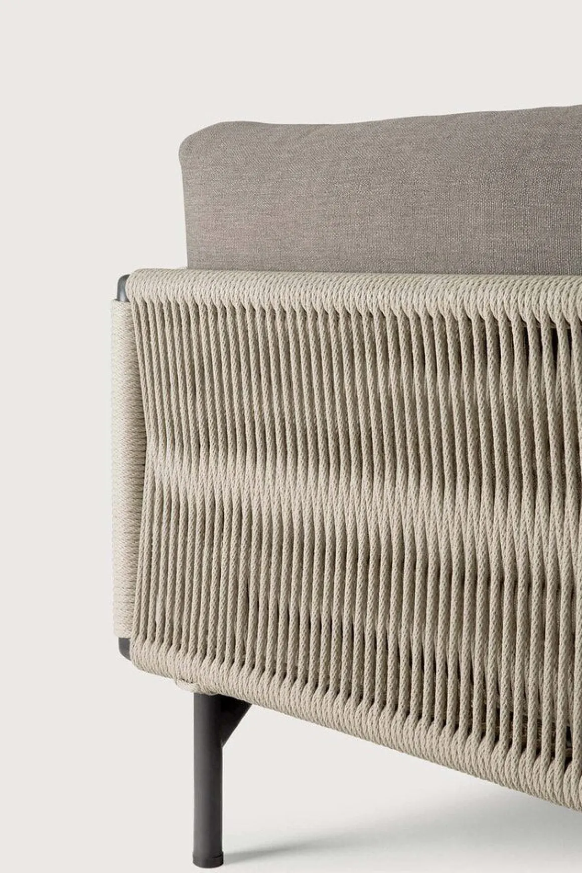 Corbey utesofaen er inspirert av det franske ordet «Corbeille,» som betyr kurv, og gjenspeiler de sjarmerende strandhivene på Waddenøyene, spesielt langs kysten av den idylliske øya Sylt. Med komfortable puter og vevde kordetaljer, skaper sofaen en balansert kombinasjon av avslapning og funksjonalitet for uterommet ditt. Laget av pulverlakkert aluminium, solid teak og hurtigttørkende skum, er denne sofaen både holdbar og lett å vedlikeholde. Corbey sofaen er designet for å gi komfort og stil til uterommet ditt, enten det er på terrassen eller i hagen.