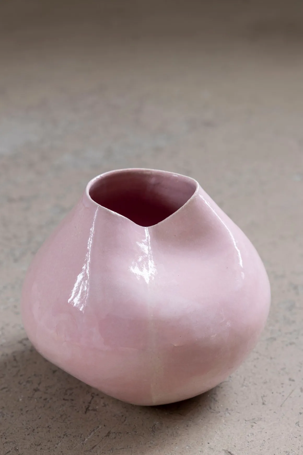 Unik, håndlaget vase i en dus rosafarge fra norske Jossolini. Jossolini er grunnlagt og drevet av Johanne Birkeland, en norsk keramiker med stor kjærlighet for leire og dens karakteristiske uttrykk. Dette gjenspeiles i Jossolinis fantastiske, fargerike produkter, der alt er designet, laget og brent i hennes verksted på Tjøme og i Oslo.