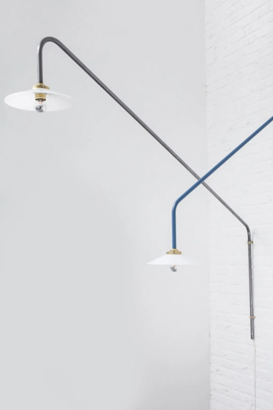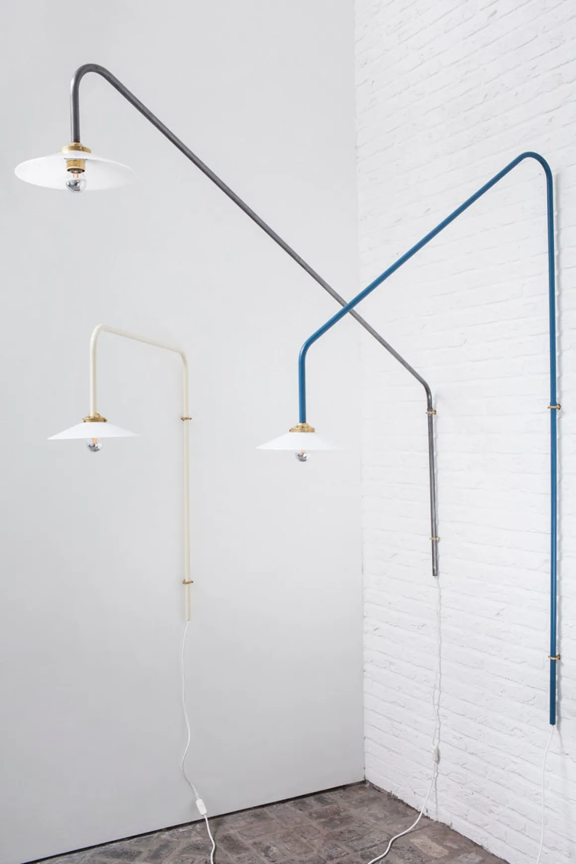 Hanging Lamp vegglampe N°1, designet av Muller Van Severen for Valerie Objects. Hanging Lamp-serien har et naivt og lekent formspråk i sterke farger og er laget av pulverlakkert stål eller messing med en enkel lampeskjerm i hvitt glass. Lampene er sofistikerte med en industriell look og et ukomplisert og ærlig design. La den henge over spisebordet, sofaen, sengen eller i gangen, og la fargene tilføre liv og lekenhet til innredningen. Siden Hanging Lamp kommer i flere ulike varianter og størrelser, kan du finne den perfekte match til ditt hjem.