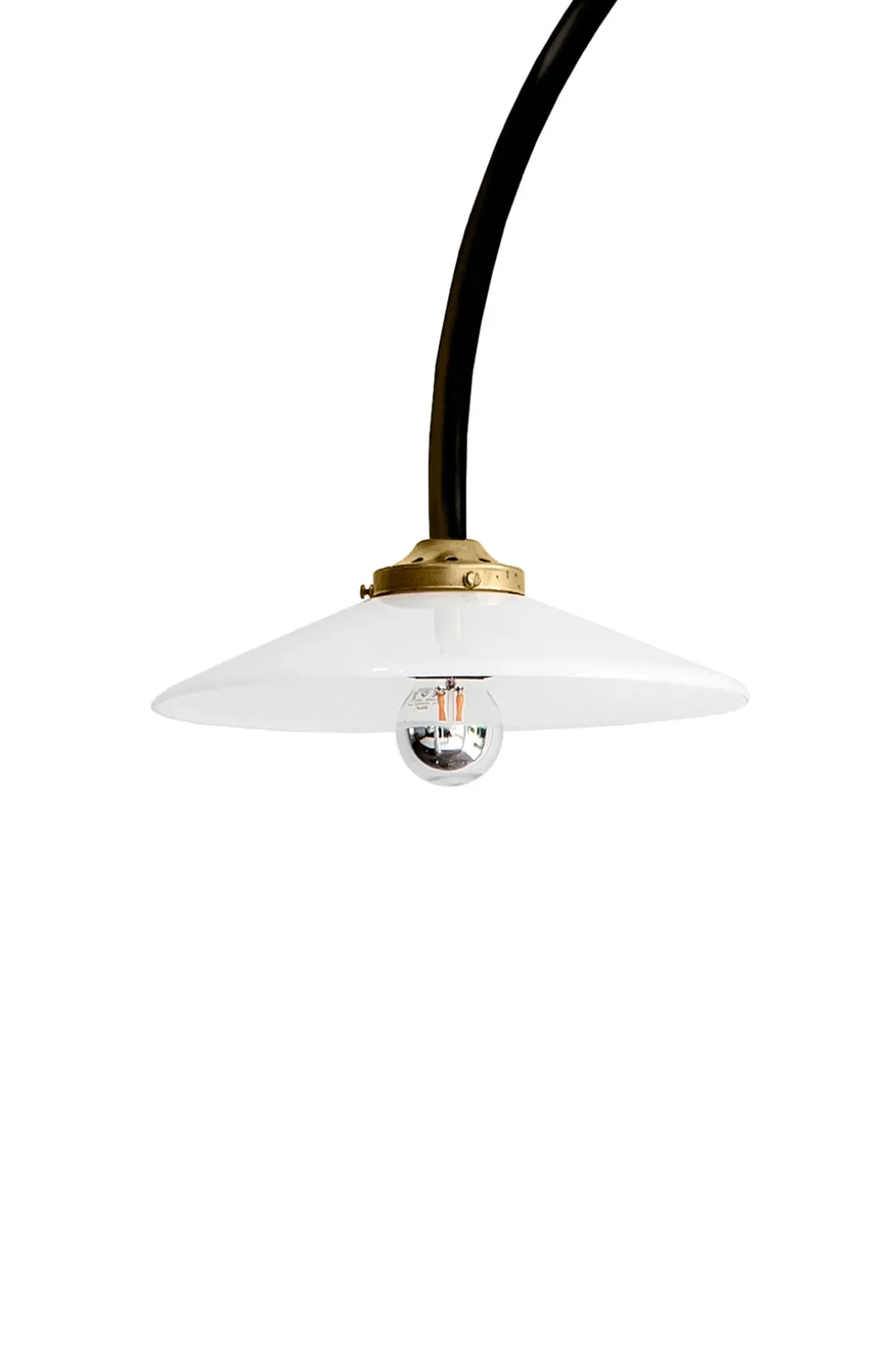 Hanging Lamp vegglampe N°2, designet av Muller Van Severen for Valerie Objects. Hanging Lamp-serien har et naivt og lekent formspråk i sterke farger og er laget av pulverlakkert stål eller messing med en enkel lampeskjerm i hvitt glass. Lampene er sofistikerte med en industriell look og et ukomplisert og ærlig design. La den henge over spisebordet, sofaen, sengen eller i gangen, og la fargene tilføre liv og lekenhet til innredningen. Siden Hanging Lamp kommer i flere ulike varianter og størrelser, kan du finne den perfekte match til ditt hjem.