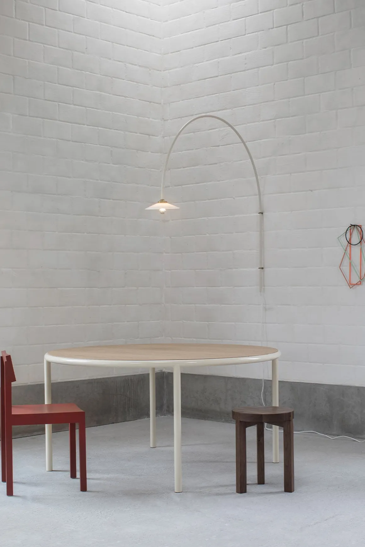 Hanging Lamp vegglampe N°3, designet av Muller Van Severen for Valerie Objects. Hanging Lamp-serien har et naivt og lekent formspråk i sterke farger og er laget av pulverlakkert stål eller messing med en enkel lampeskjerm i hvitt glass. Lampene er sofistikerte med en industriell look og et ukomplisert og ærlig design. La den henge over spisebordet, sofaen, sengen eller i gangen, og la fargene tilføre liv og lekenhet til innredningen. Siden Hanging Lamp kommer i flere ulike varianter og størrelser, kan du finne den perfekte match til ditt hjem.