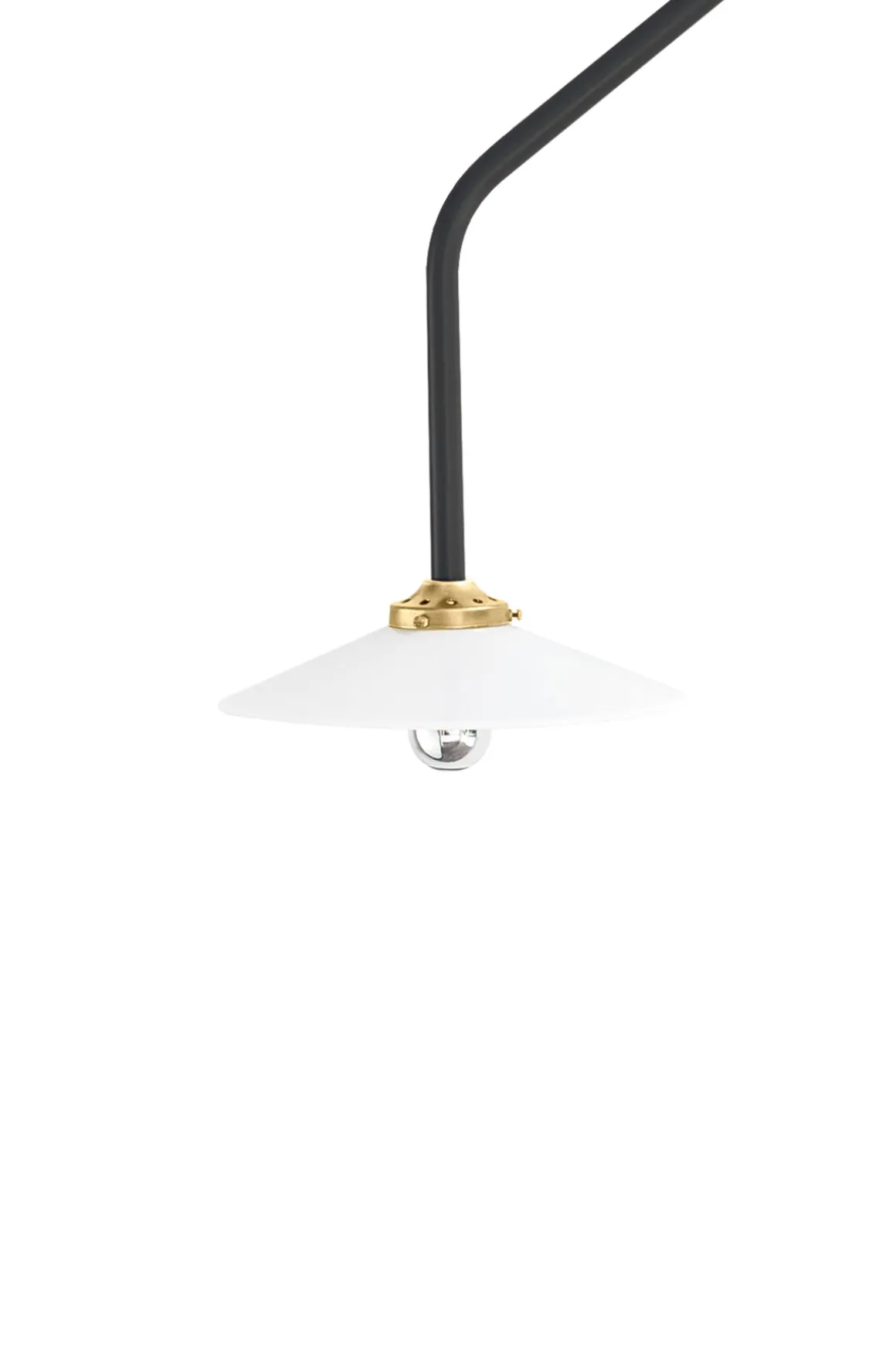 Hanging Lamp vegglampe N°4, designet av Muller Van Severen for Valerie Objects. Hanging Lamp-serien har et naivt og lekent formspråk i sterke farger og er laget av pulverlakkert stål eller messing med en enkel lampeskjerm i hvitt glass. Lampene er sofistikerte med en industriell look og et ukomplisert og ærlig design. La den henge over spisebordet, sofaen, sengen eller i gangen, og la fargene tilføre liv og lekenhet til innredningen. Siden Hanging Lamp kommer i flere ulike varianter og størrelser, kan du finne den perfekte match til ditt hjem.
