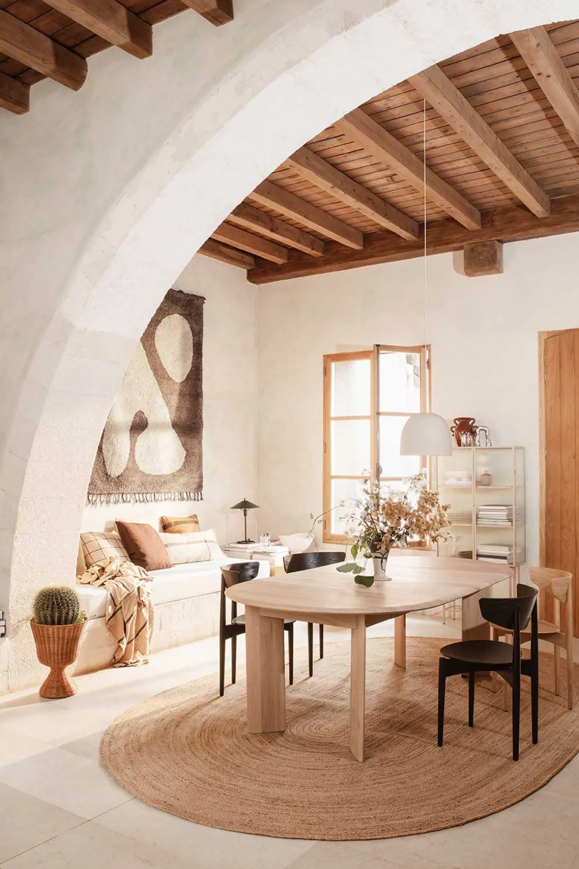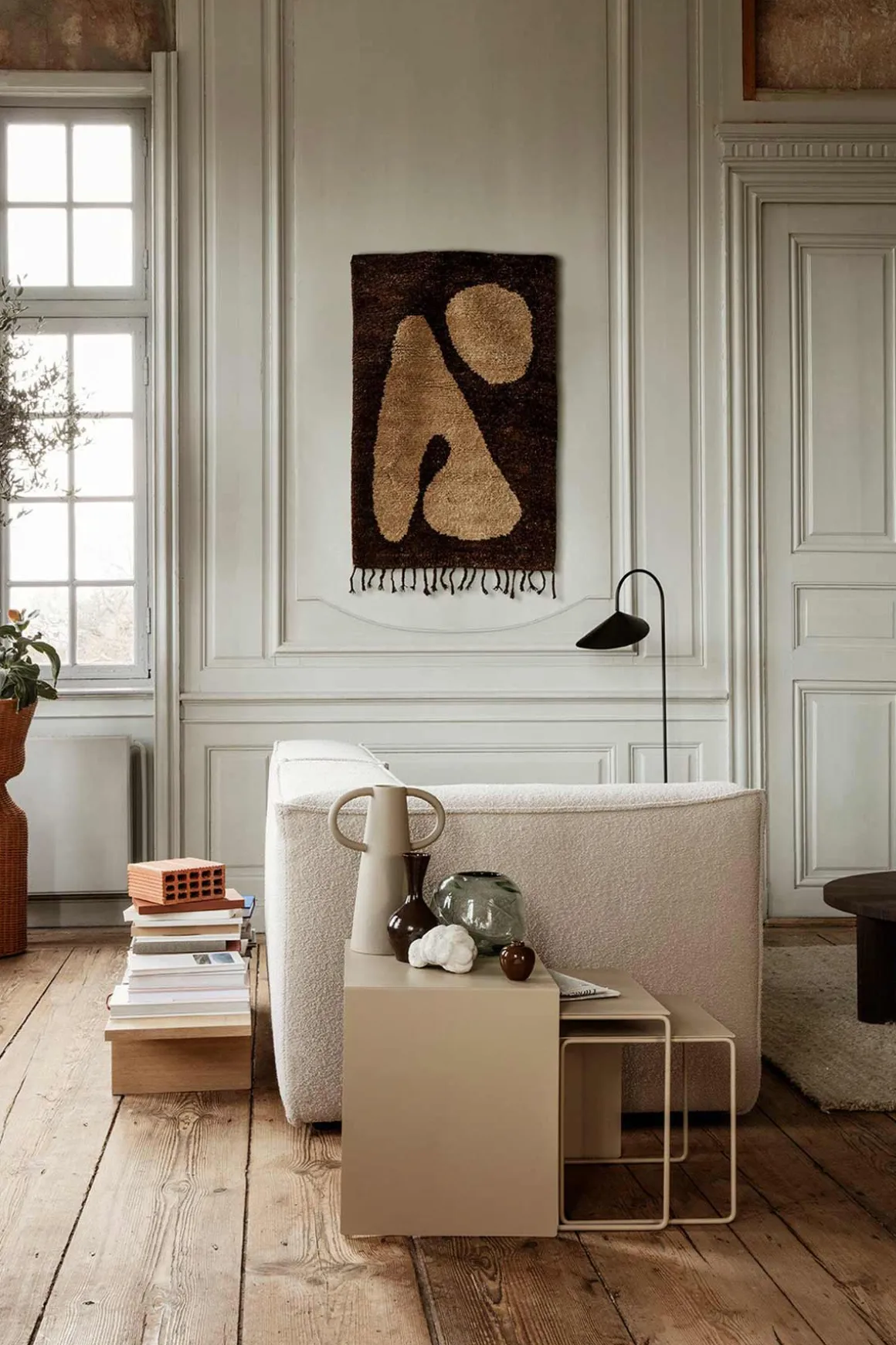 Dekorer hjemmet med det fantastiske veggteppet Abstract Rug fra Ferm Living. Teppet har et skulpturelt mønster i beroligende, jordnære nyanser av brunt og off-white, og er laget av håndknyttet, myk New Zealand-ull som tilfører teppet et taktilt og rolig uttrykk. Teppet kan brukes som både gulvteppe eller veggteppe, og vil sette sitt preg på soverommet, barnerommet eller stua uten å overdøve resten av interiøret. Abstract kommer også i en større variant på 120 x 180 cm.