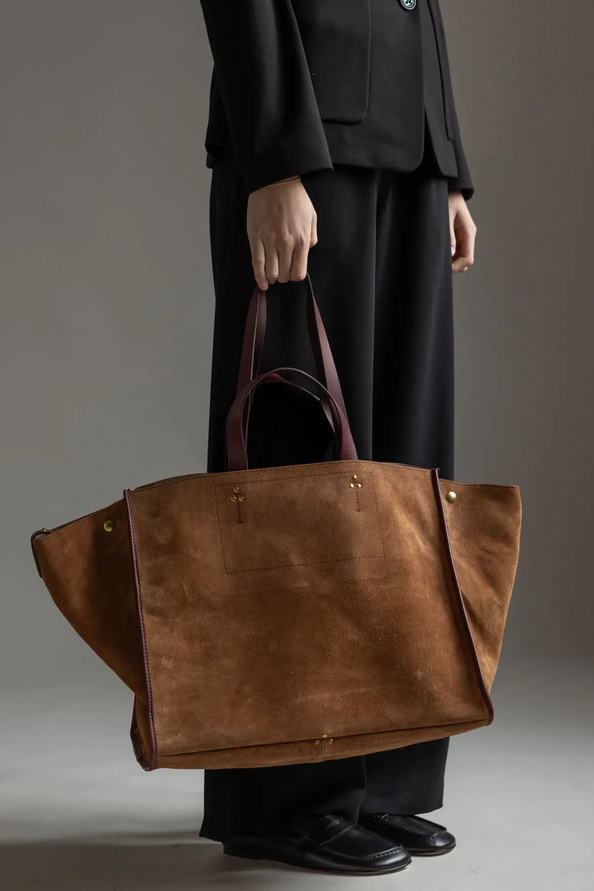 Leon L Noir Split Suede er en romslig veske fra Jerome Dreyfuss i brunt splittet semsket skinn. Vesken har fire håndtak i to lengder i skinn på toppen av vesken og kan brukes både som håndveske og skulderveske. Vesken lukkes med skinnklaffer med trykknapper. Leon-vesken er perfekt å bruke til og fra jobb/skole, på reise og andre anledninger når du trenger å ha med deg litt stæsj. Skinn får en naturlig patina over tid, som bare vil gjøre vesken finere – og vi håper du kommer til å elske din Leon i veldig mange år.