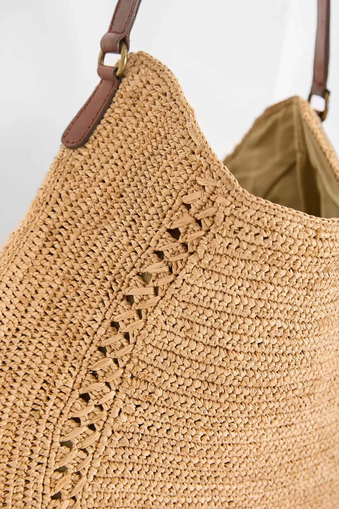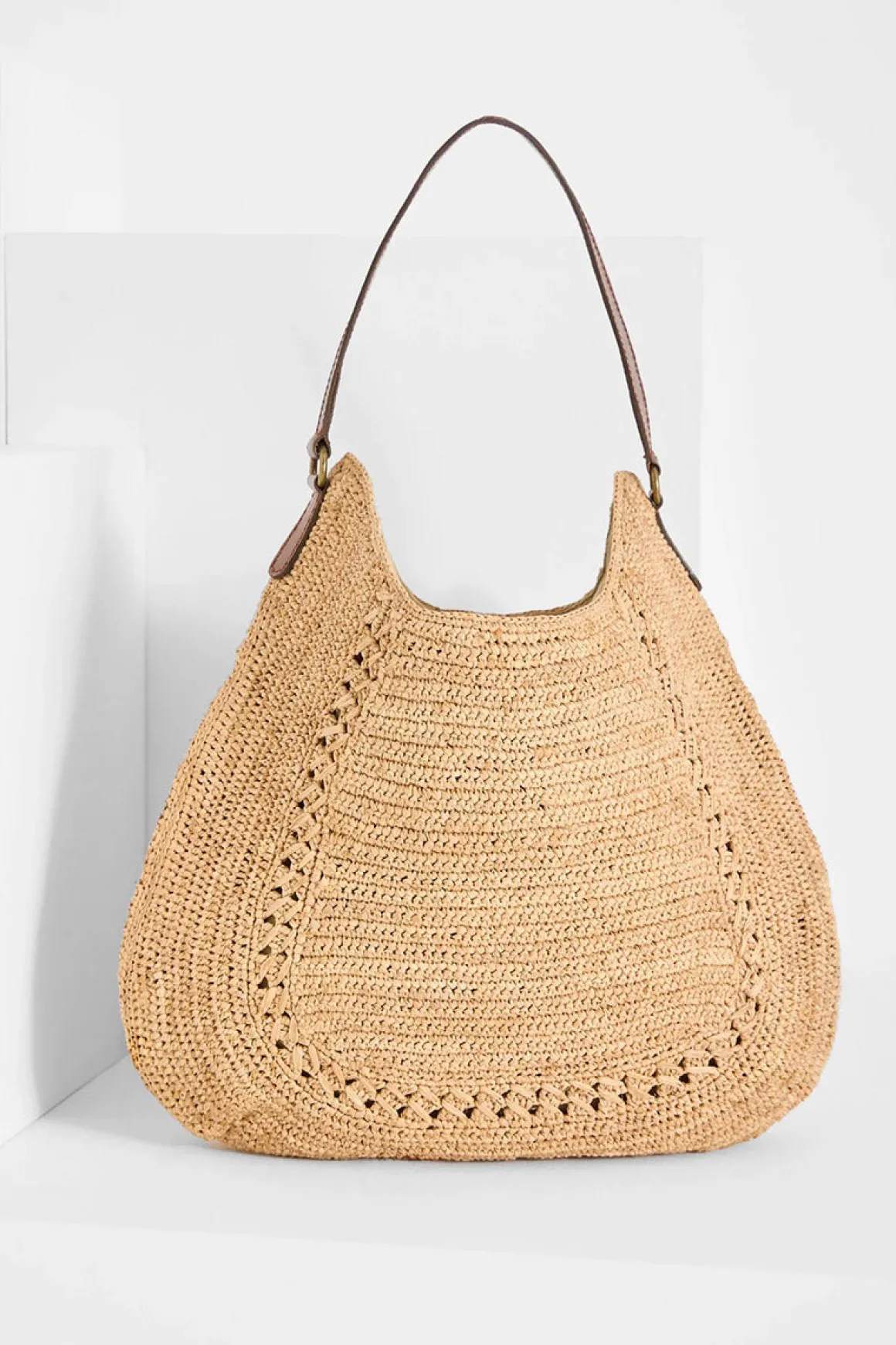 Meva fra Ibeliv er en håndlaget skulderveske i naturlig raffia, med myk hobo-form og avslappet bohemsk stil. Den er heklet for hånd på Madagaskar og kombinerer tradisjonelt håndverk med en tidløs, minimalistisk silhuett. Den mellomstore størrelsen og fleksible formen gjør at vesken sitter behagelig under armen – perfekt både til jobb og helgeturer. Et vegetabilsk garvet skinnhåndtak gir god komfort og skaper en fin kontrast til den myke raffiaen. Innsiden er fôret med økologisk bomull, har en praktisk innerlomme og lukkes enkelt med magnet. Det subtile mønsterspillet i heklingen gir Meva et rent uttrykk og gjør den like aktuell sesong etter sesong.