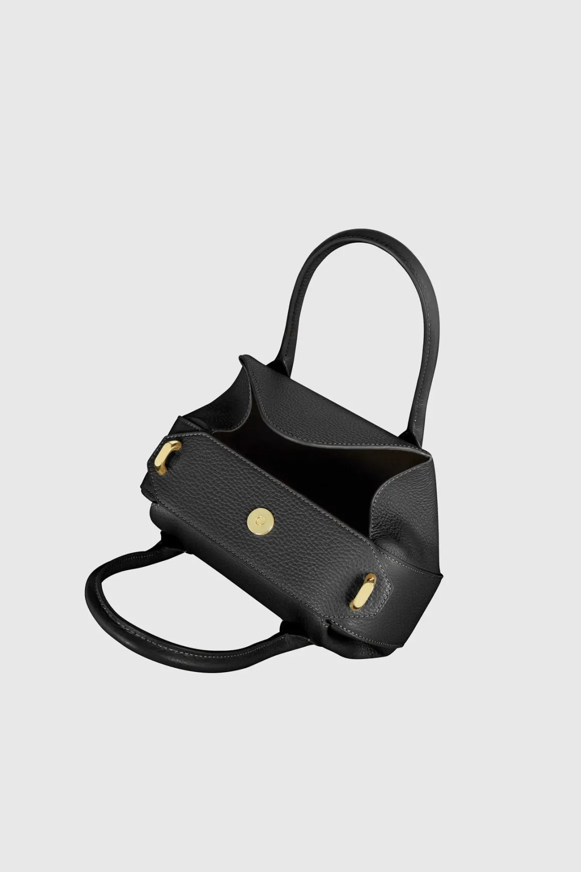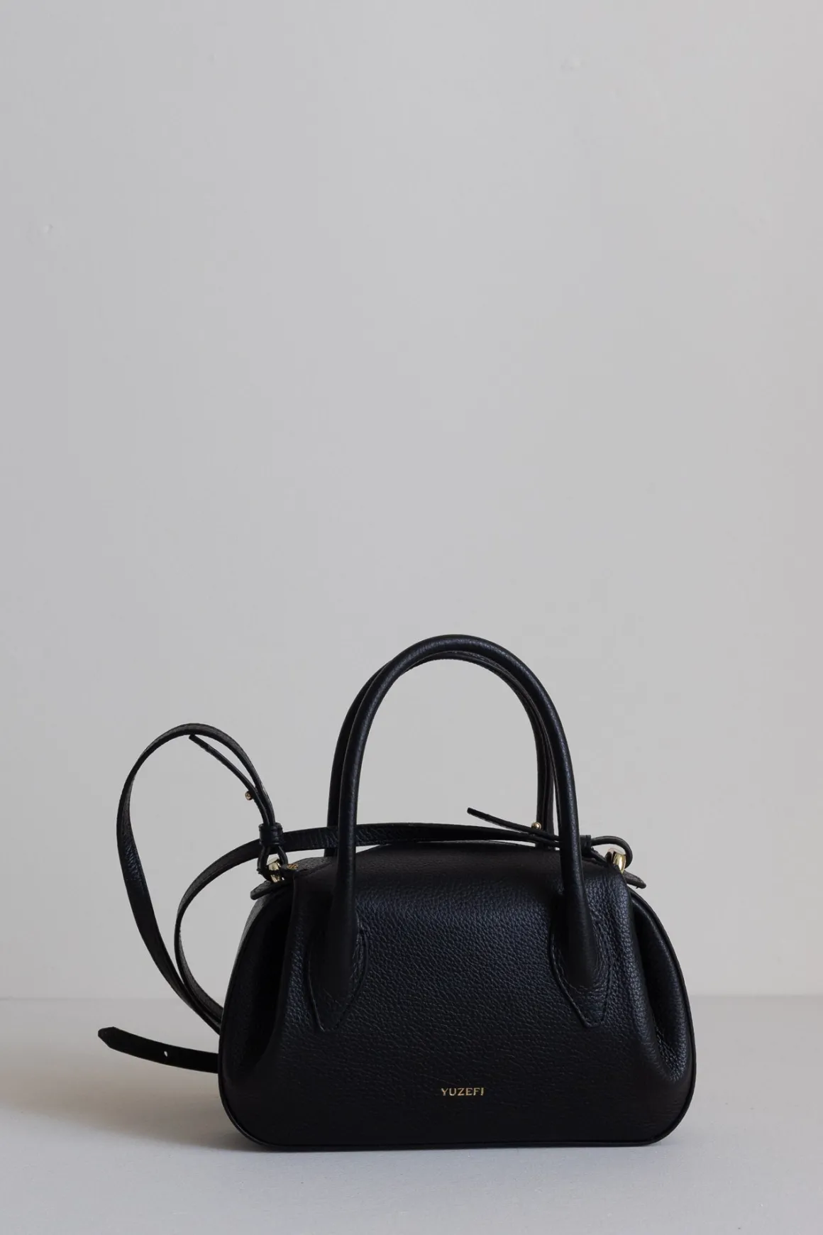 The Mini Oyster Duffle er laget av førsteklasses italiensk espressofarget skinn med pebble-grain tekstur. Vesken har et topphåndtak og en skinnrem som kan bæres crossbody. Den kompakte størrelsen gjør den perfekt til nødvendigheter, og den lukkes med en magnet.